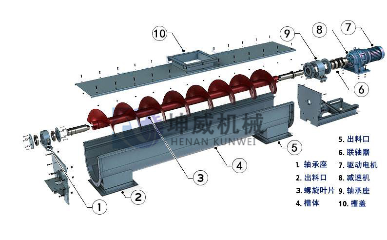 螺旋輸送機主要部件包括驅動裝置,機頭,機尾,內管軸。